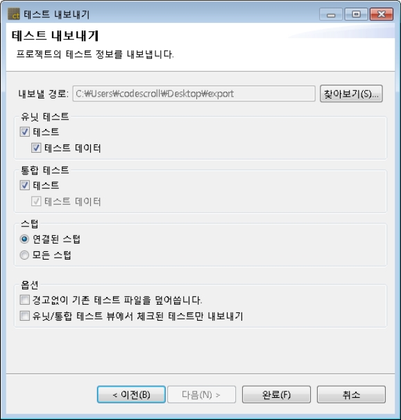 ※ 통합 테스트를 내보낼 때는 테스트 데이터와 세트로 내보내집니다.